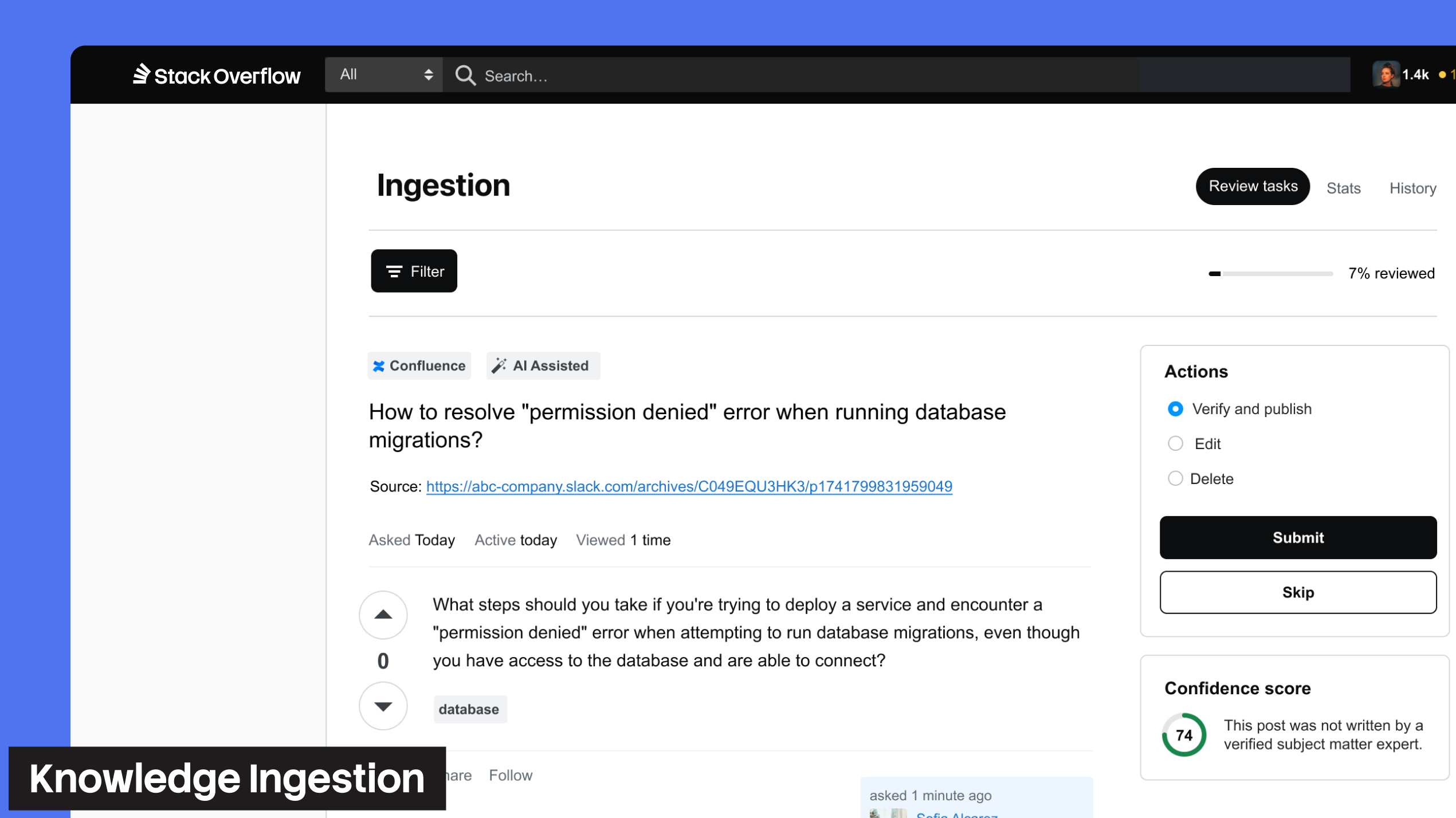 One of the biggest challenges in enterprise knowledge management is fragmentation. Knowledge Ingestion solves this by transforming existing content from tools like Confluence, MS Teams, Slack, and ServiceNow into trusted, structured knowledge inside Stack Internal.