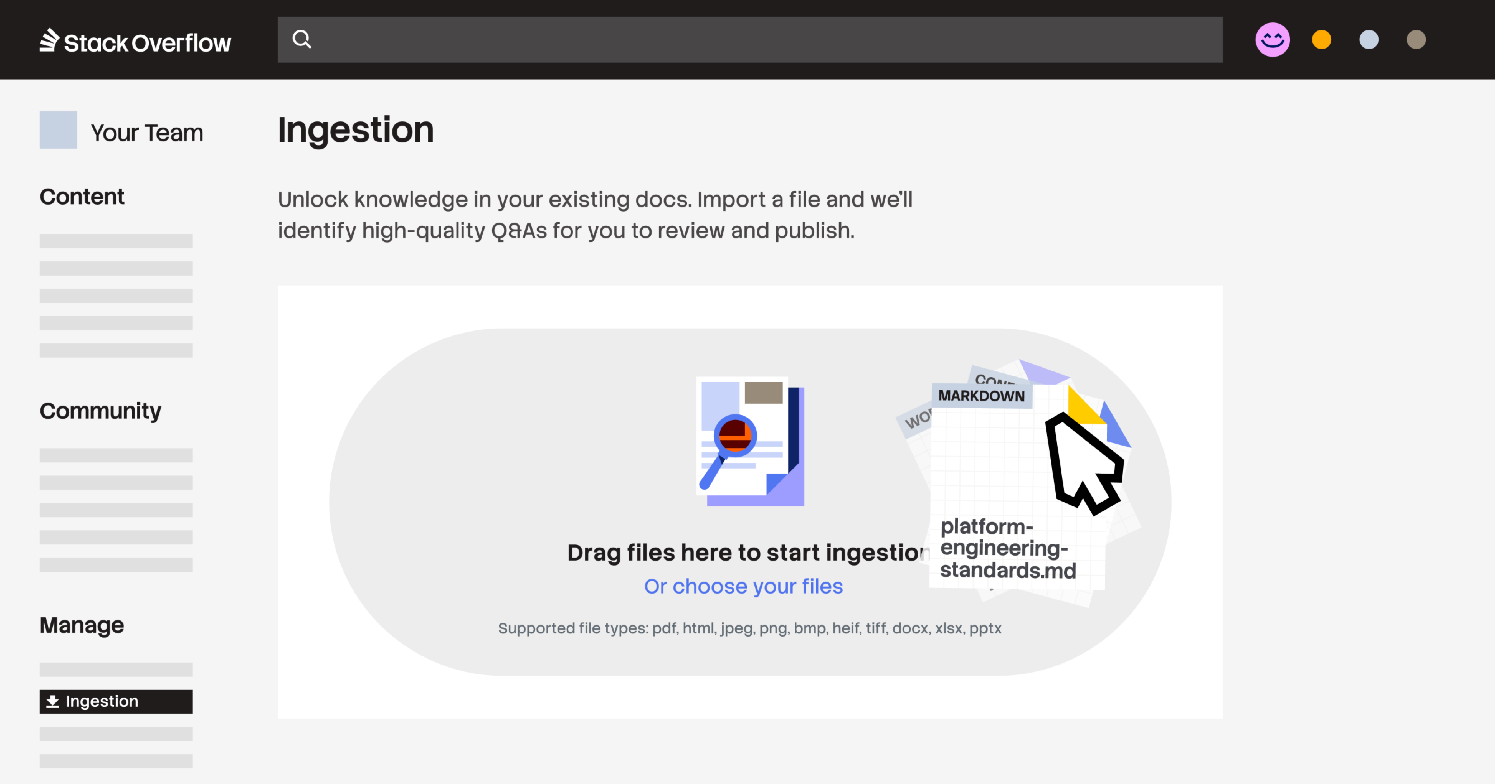 You’ve built a strong foundation in Stack Internal, but refreshing it with new content and onboarding other departments shouldn't be a manual hurdle. Ingestion now allows you to quickly seed your instance with structured, verified knowledge that would otherwise remain siloed across your tools.
